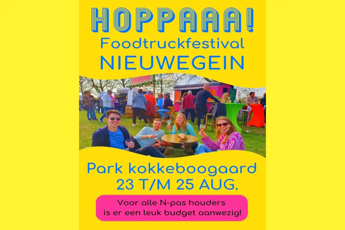 Oer-Hollandse frietjes, poffertjes en tosti’s tot authentieke Italiaanse pasta’s, pizza’s en heerlijke anti pasti. Veel rijdende keukens bieden het shared dining principe aan door middel van een goed gevulde borrelplank of smikkelplateau. “We zien dat veel vriendenclubjes en gezinnen ervan houden om gerechten met elkaar te delen” aldus Gera van Vliet van evenementenorganisatie Bruisend. Lang tafelen met een drankje erbij en lekkere muziek op de achtergrond. Ondertussen kunnen de kids een sjoel competitie houden, zich laten schminken of een glitter tattoo laten zetten, dat is HOPPAAA!