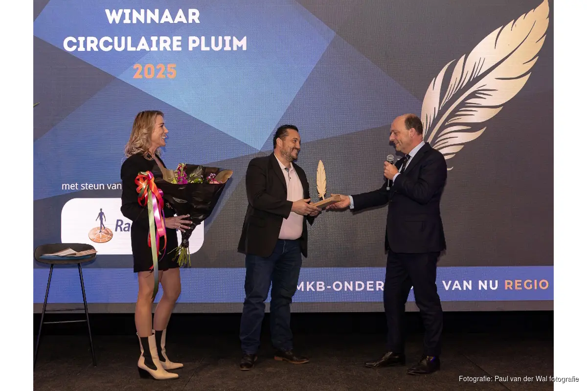 Vandaag werd ook de Circulaire Pluim uitgereikt, aan de onderneming die van alle inzenders het meest uitblinkt in circulariteit. De Circulaire Pluim ging naar Weever Circulair, een bedrijf dat in alles circulariteit ademt. Op bouw- en sloopplaatsen oogst dit bedrijf bouw- en sloopmaterialen om ze vervolgens aan te kunnen bieden in hun bouwmaterialenkringloop. Ze bieden kansen aan mensen met een afstand tot de arbeidsmarkt door ze op te leiden tot ‘grondstofredders’. De kennis hierover delen ze met de branche. Zo bouwen ze aan een circulaire toekomst, waar grondstoffen en mensen nooit worden afgeschreven. Gerwin de Vries nam de prijs in ontvangst.